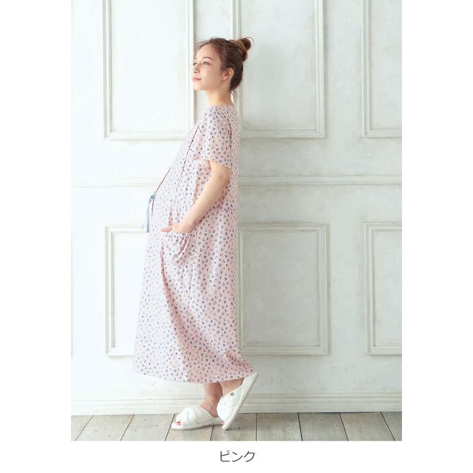 マタニティ パジャマ 前開き ルームウェア ワンピース 半袖 文昌堂 ポンパレモール